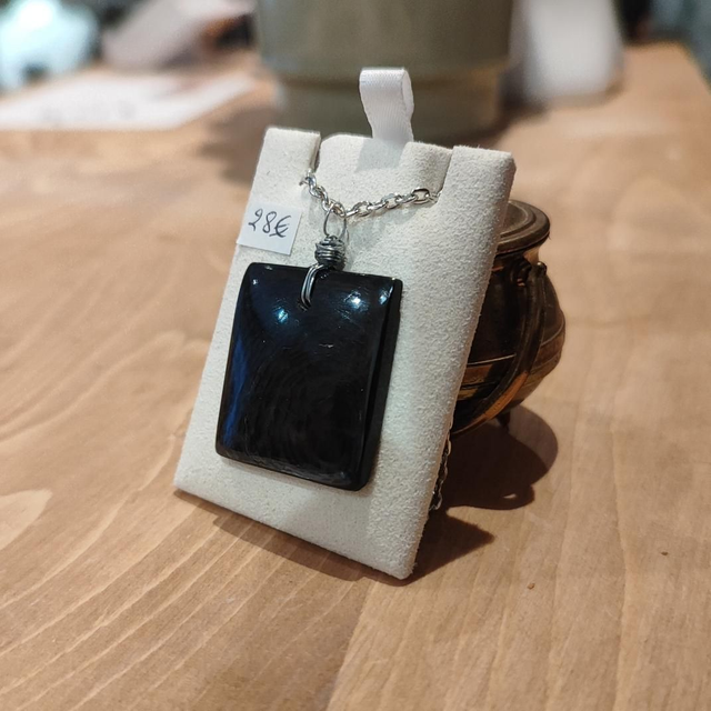 Hypersthène d'Australie sur chaîne en platine argenté