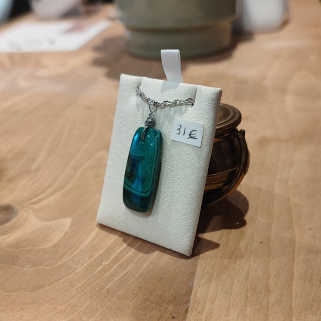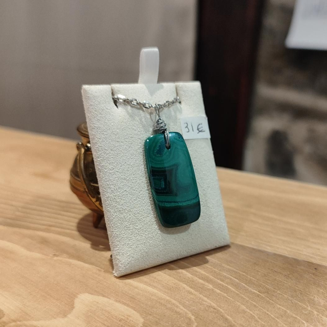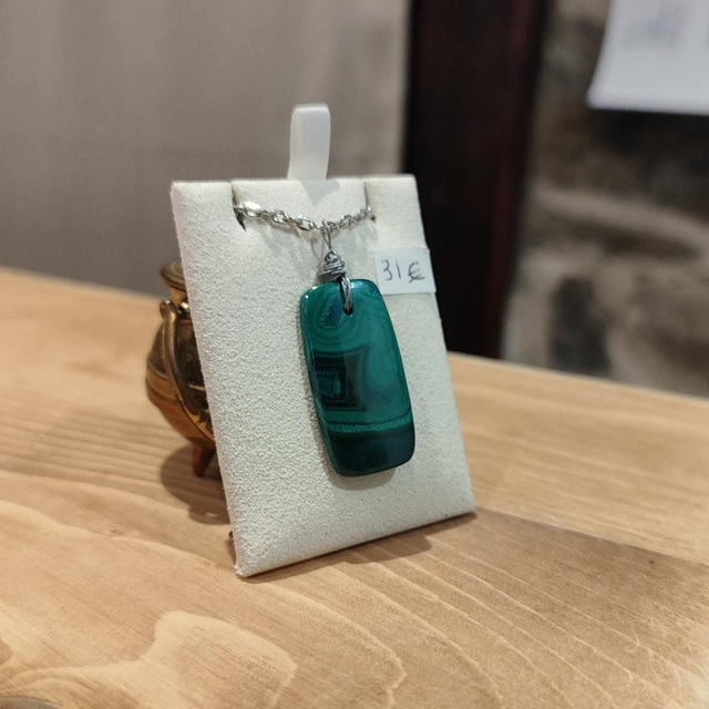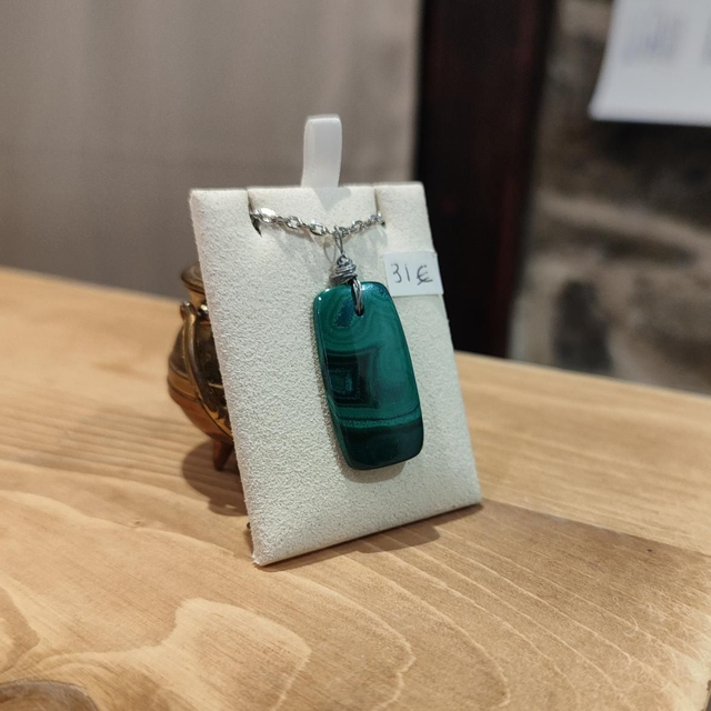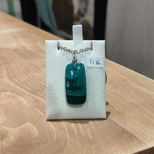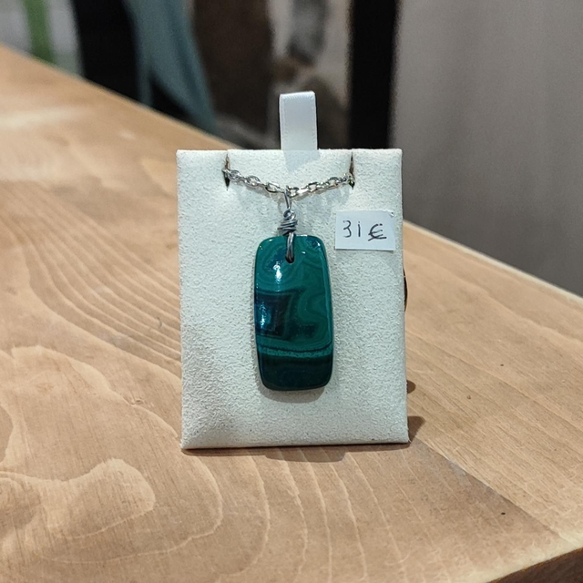 Malachite du Congo sur chaîne en platine argenté